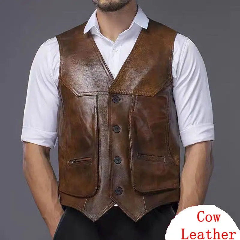 Genuine Cowhide Leather Motorcycle Vest